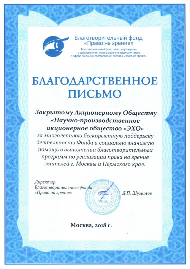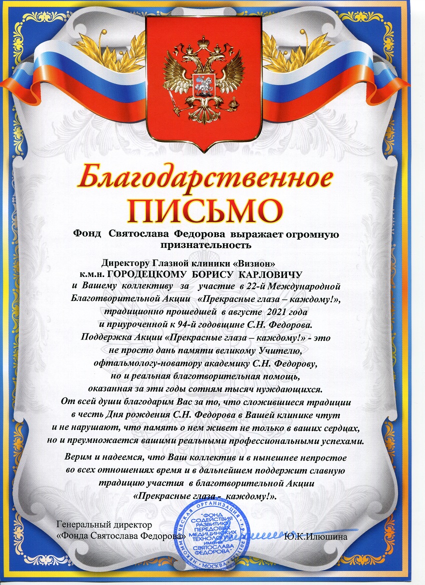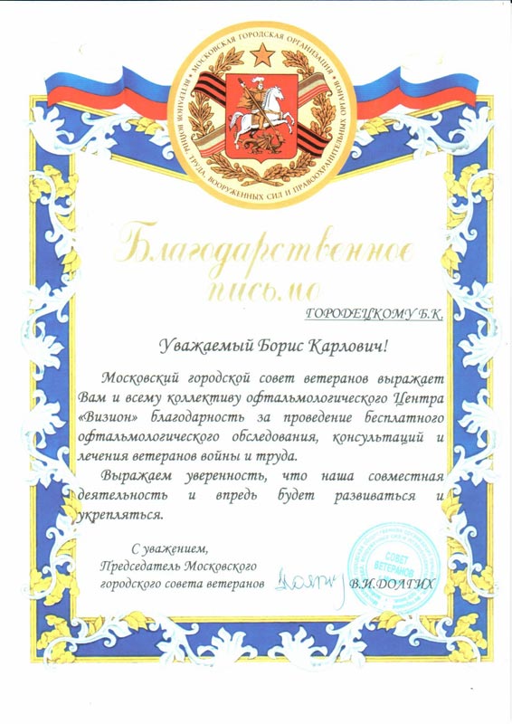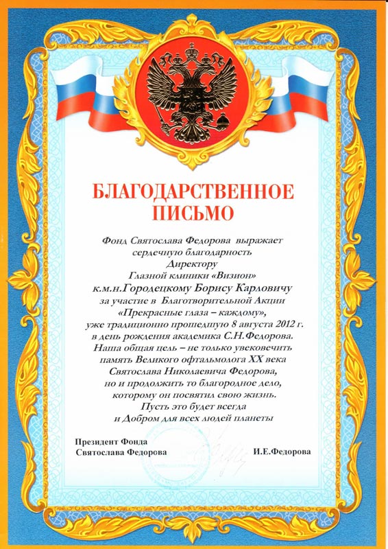Благодарственные присьма